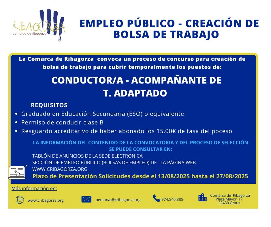 Proceso de concurso para la creación de una bolsa de trabajo que garantice la cobertura temporal de los puestos de trabajo de Conductor/a -Acompañante de Transporte Adaptado